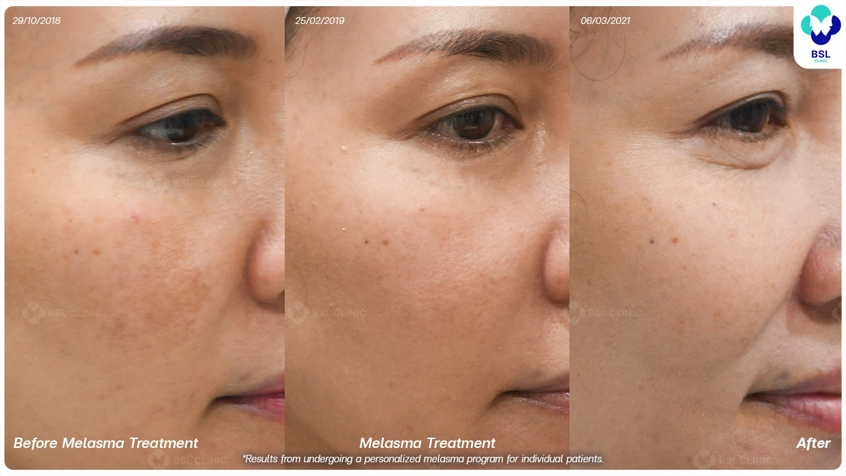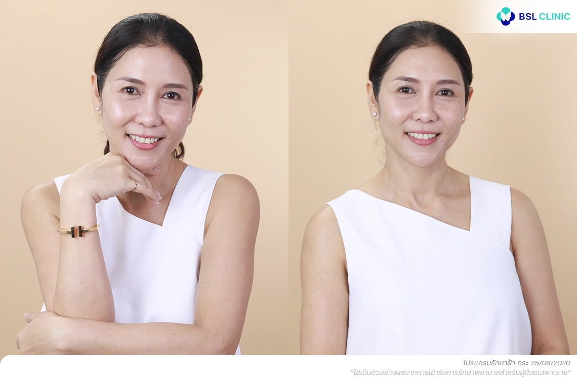 “ตอนแรกไม่คิดว่าฝ้าจะเกิดจากแสงแดดอ่อนๆ ในเยอรมนี แต่หลังจากหลายปีฝ้าเริ่มลึกขึ้น จึงลองไปรักษาที่สวิสเซอร์แลนด์ แต่ไม่ได้ผลเพราะเขากลัวทำเลเซอร์ให้ผิวคนเอเชีย จนมาเจอกับ BSL Clinic หลังทำไม่รู้สึกแสบผิว รู้สึกว่าฝ้าดูลดลงมาก ผิวหน้าเนียนเรียบขึ้นอย่างชัดเจนค่ะ”