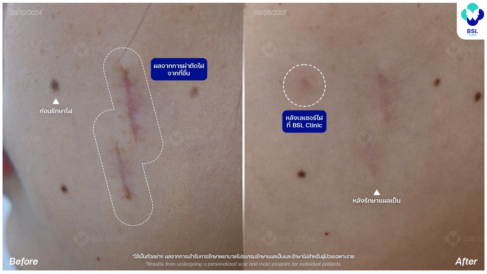 *ใช้เป็นตัวอย่าง ผลจากการเข้ารับการรักษาพยาบาลสำหรับผู้ป่วยเฉพาะราย*