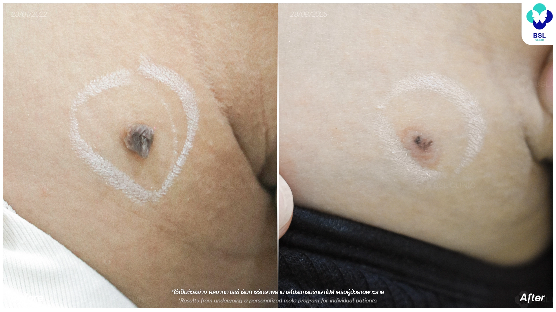 ไฝ ขี้แมลงวัน และติ่งเนื้อ แม้จะเป็นจุดเล็ก ๆ บนผิว แต่หลายคนมักรู้สึกกังวลเมื่อปรากฏอยู่ในตำแหน่งที่มองเห็นง่าย เช่น บนใบหน้า ลำคอ หรือบริเวณที่สัมผัสสายตาผู้อื่นอยู่เสมอ ความรู้สึกไม่มั่นใจจึงเกิดขึ้นได้ง่าย และทำให้หลายคนอยากเห็นลักษณะการเปลี่ยนแปลงหลังการดูแลว่ามีภาพรวมเป็นอย่างไรบ้าง ตัวอย่างผลลัพธ์ในส่วนนี้ถูกจัดเตรียมไว้เพื่อแสดงให้เห็นลักษณะผิวของแต่ละรายหลังผ่านการดูแลตามความเหมาะสมของผิวแต่ละคน